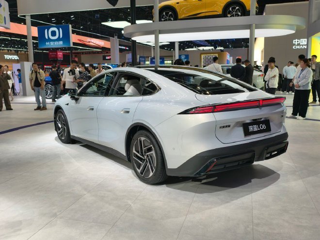 外观方面,深蓝L06 Max沿用家族化设计语言,前脸采用低趴造型与封闭式面板,搭配品牌花瓣造型LED大灯,视觉上具备辨识度。车头设有主动开闭式进气格栅,车尾则配置微微上翘的小鸭尾与贯穿式灯组,下方辅以大尺寸扩散器,整体线条流畅,风格偏年轻化。车身尺寸方面,新车长宽高分别为4830mm、1905mm、1480mm,轴距达2900mm,定位为中型纯电轿车。